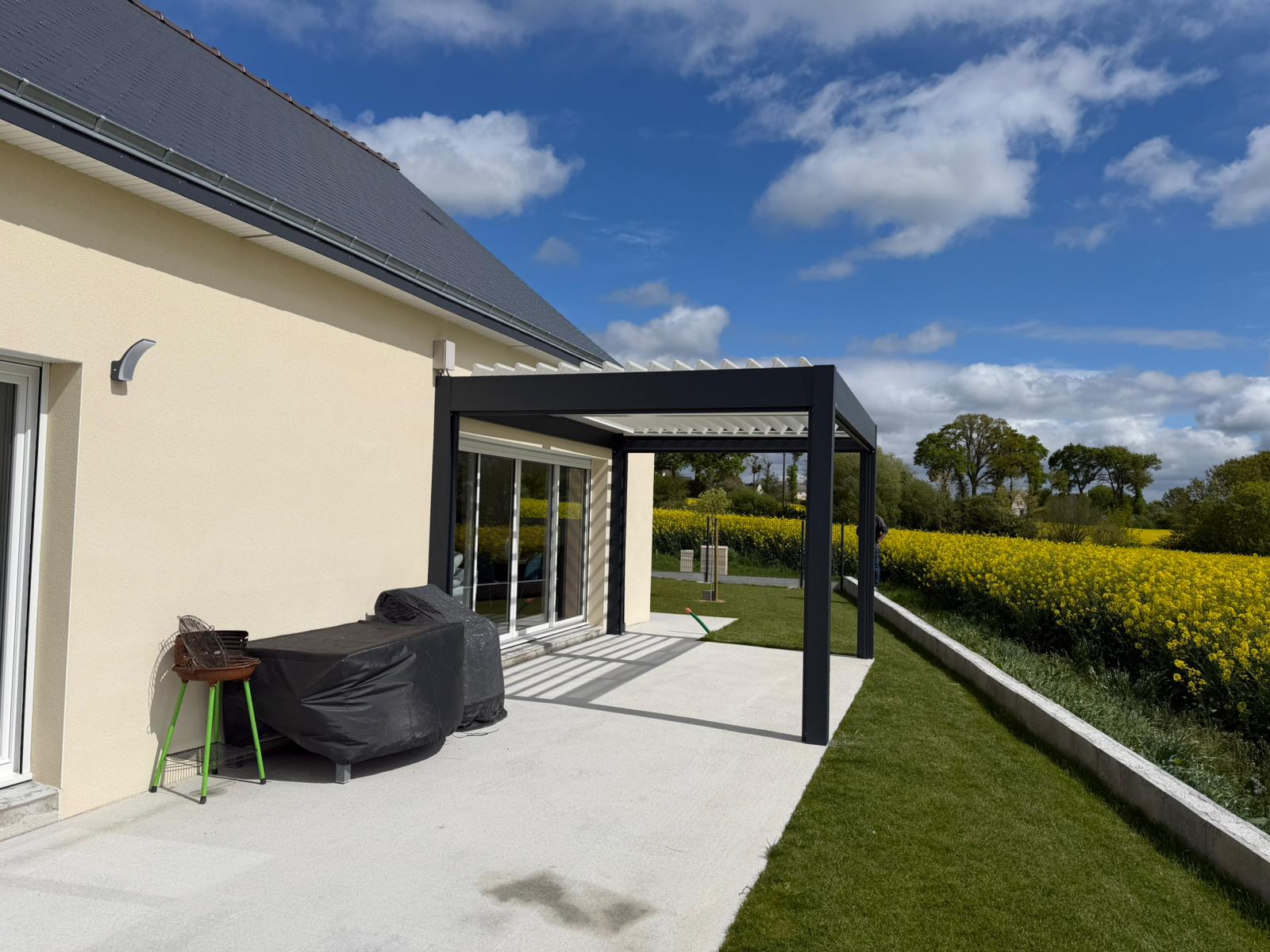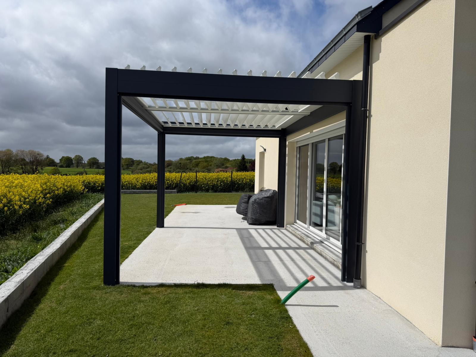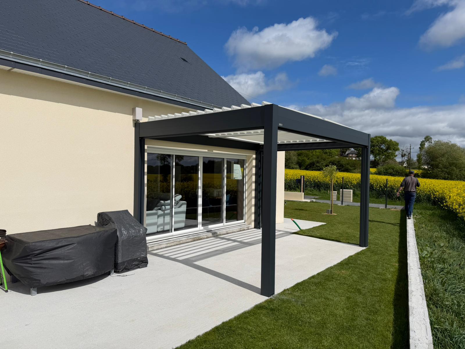 Voici une réalisation d’une pergola bioclimatique à Baulon